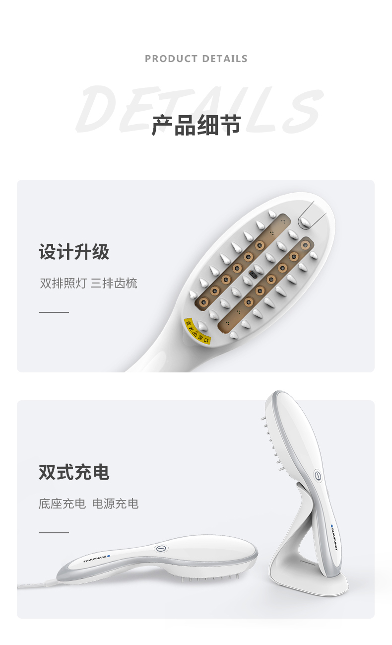 三排齿梳 大范围拨开头发 促进光束穿透皮层