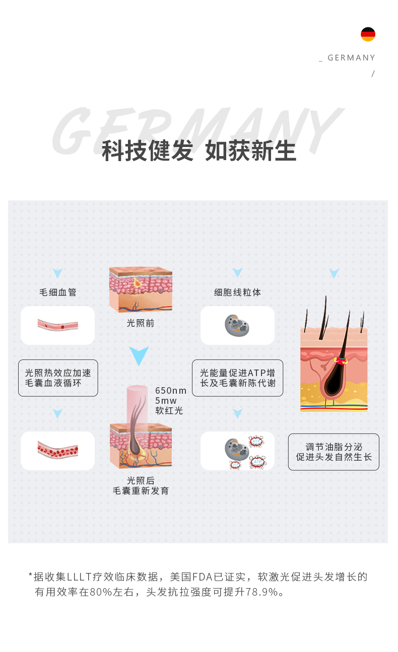 LLLT低能量红光 直达毛囊根部